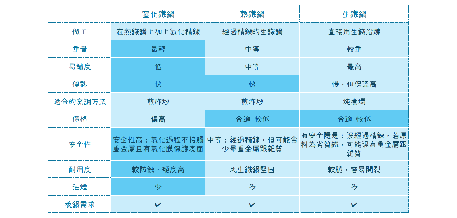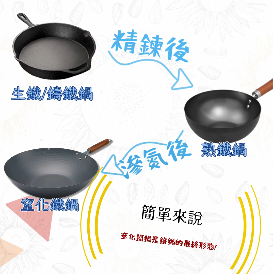 常聽到大廚講生鐵鑊?熟鐵鑊?再加上現在越來越流行的窒化鐵鑊……