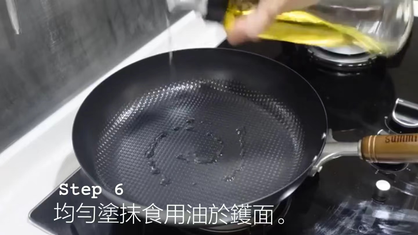 第六步:均勻塗抹食用油於鑊面,清洗加保養完成!